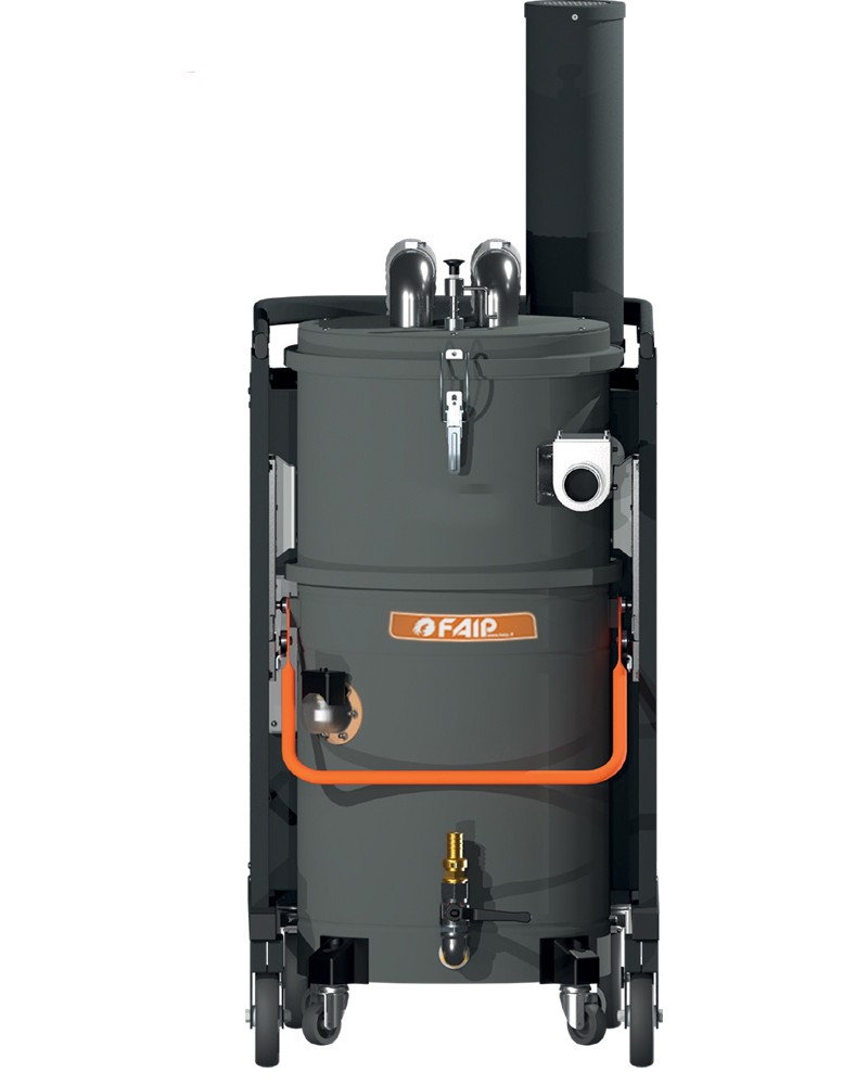 Il modello PT 155 OIL è motorizzato con turbina a canale laterale trifase da 5,5 kW in serie, ad alta prevalenza ideale per l’aspirazione di materiali pesanti, ad alto peso specifico. Strumento estremamente professionale e pratico, contraddi-stinto da funzionalità uniche nell’aspirazione di oli e trucioli in quanto è in grado di separare la parte liquida da quella solida grazie ad un cestello grigliato in acciaio inox, effettuando una macro filtrazione dei materiali. I modelli proposti per questo tipo di applicazione sono equipaggiati con un sistema di arresto dei liquidi automatico, permettendo lo spegnimento dell’aspiratore al livello di liqui-do massimo raggiungibile.