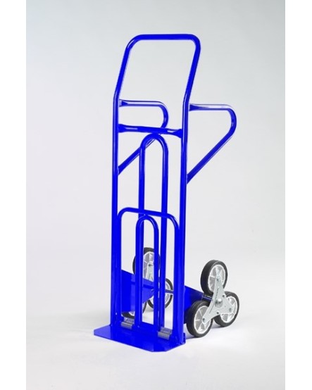 Carrello in acciaio saliscale - pedana ribaltabile maggiorata - Portata kg 250. Carrello professionale in acciaio verniciato con polveri epossidiche. Ideale per utilizzo in presenza di gradinate o scale che supera agevolmente tramite le 6 ruote rotanti. Sei ruote con gomma piena diam. 150 mm. La struttura è costituita da robusti tubolari saldati con diam. 25 mm. Dotato di pedana ribaltabile maggiorata. Rinforzi telaio interno in tubolare. Dotato di maniglioni ergonomici maggiorati di presa per il sollevamento integrati nel telaio.