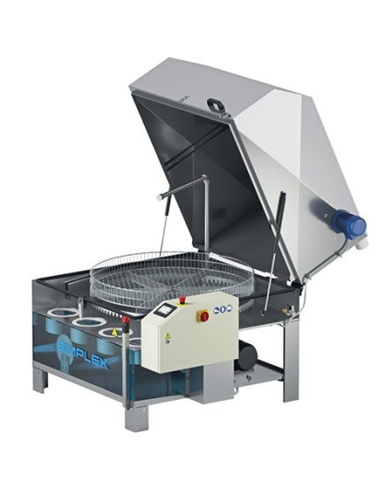 IMPIANTO CHE PERMETTE IL LAVAGGIO AUTOMATICO DI PARTICOLARI MECCANICI DI PICCOLE E MEDIE DIMENSIONI. Il lavaggio viene eseguito per mezzo dei getti superiori, inferiori e laterali, la rotazione lenta del cestello è garantita da un motoriduttore. La gestione, affidata ad un PLC, consente moltissime possibilità di personalizzazione, grazie anche ad un’ampia scelta di accessori.